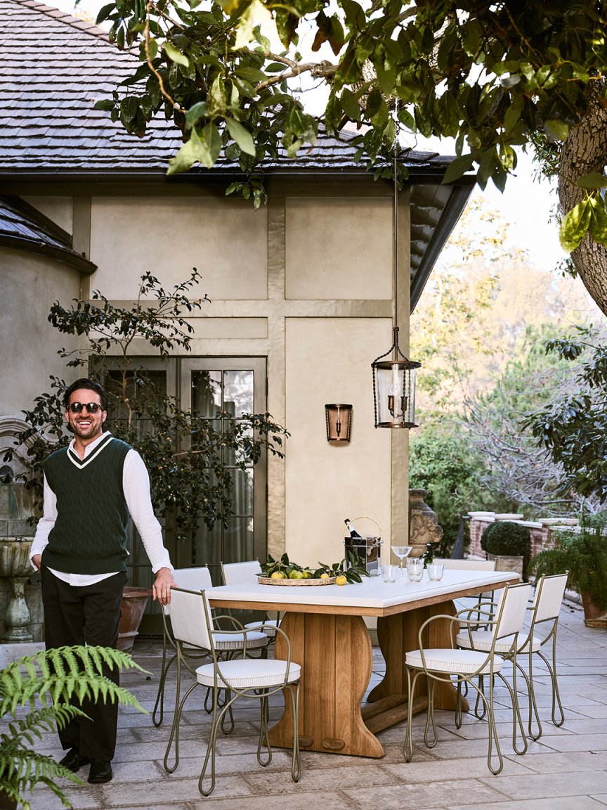 I lived in this incredible building in West Hollywood called The Colonial House. Around the pool, there were architectural details that were Old Hollywood glam, sort of whimsical regency. The [furniture] was very much white piping and sage green. I’ve always remembered that, and so that’s why I wanted to take a risk and stay away from black metal.