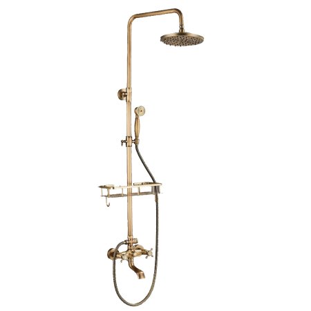The entire shower set, which appears to be in a vintage brass finish, adds up to a cool $32,000 (!) and ships in approximately 35 weeks (each one is made to order). For those who aren’t funding a reno with Friends royalties, or simply aren’t too keen on waiting eight months to outfit a bathroom, we scoured the Internet for similar styles so you can get the look in a lot less time and for a fraction of the price.