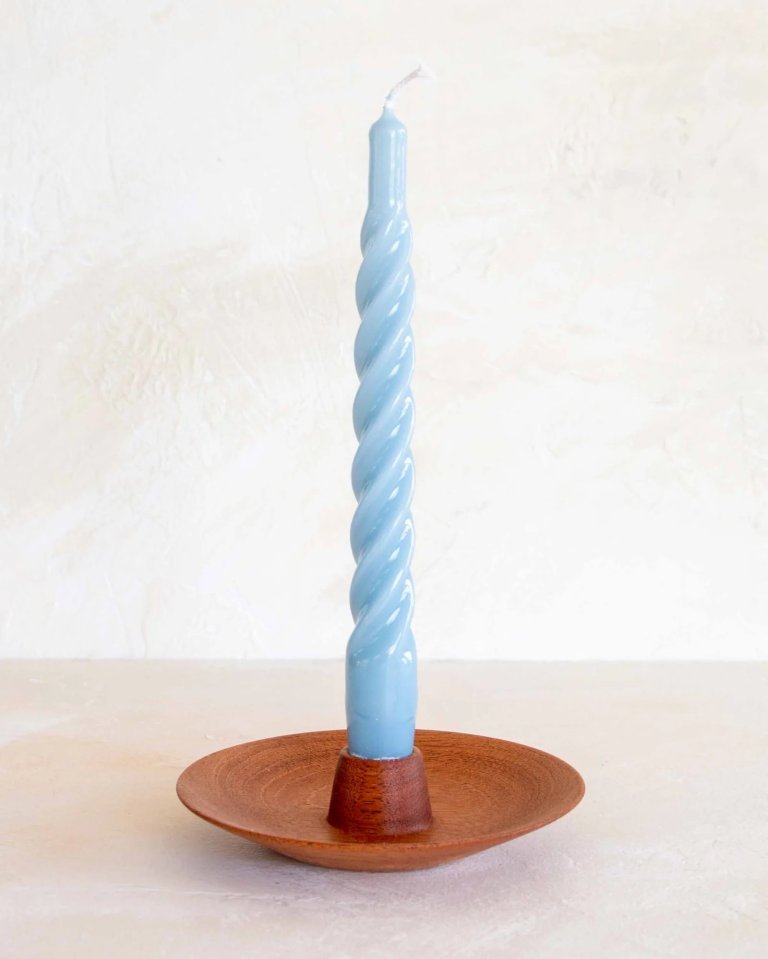 Next to a bed, on a stack of books, or at the center of a dining table, this mahogany taper holder is a feel-good addition to any space. It’s sustainably harvested and handcrafted with care by artisans in Guatemala.