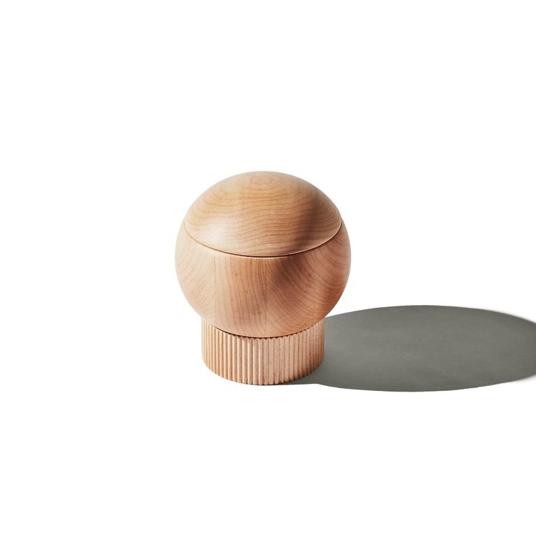 Add some spice to your table setting (literally) with this salt sphere. Available in walnut or maple, the swivel lid and stackable fluted base combo is perfect for storing finishing salts, pepper, and seasoning blends.