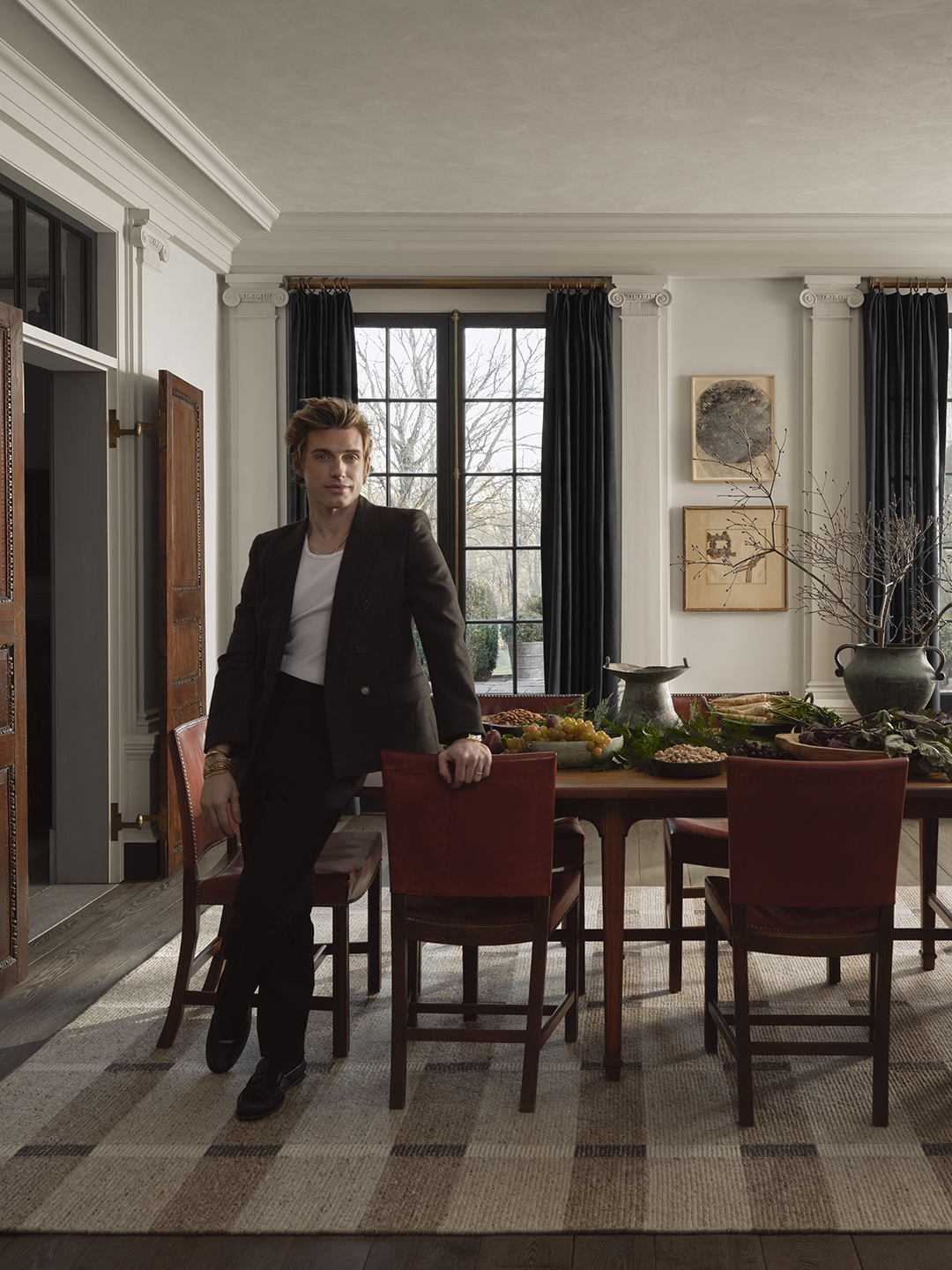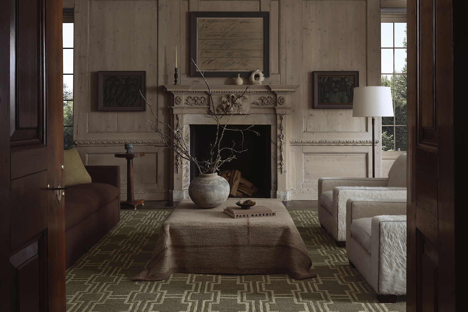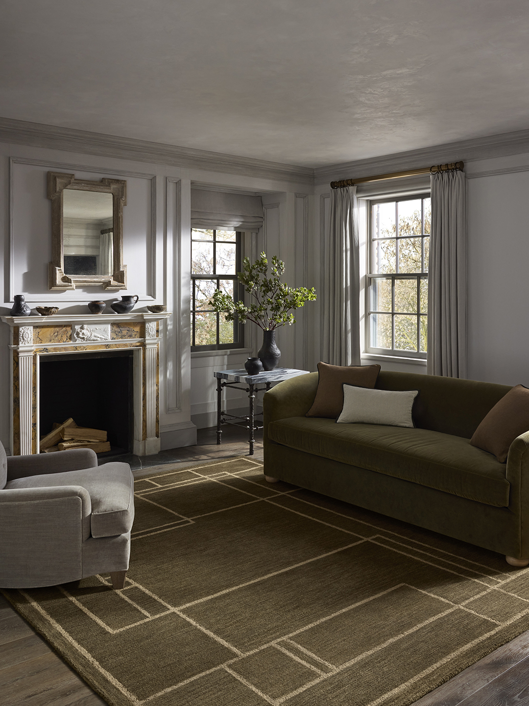 ICYMI: Brent is all in on Art Deco these days, and the meandering lines on the hand-tufted Barrow Olive/Natural rug really drive home his empire state of mind.