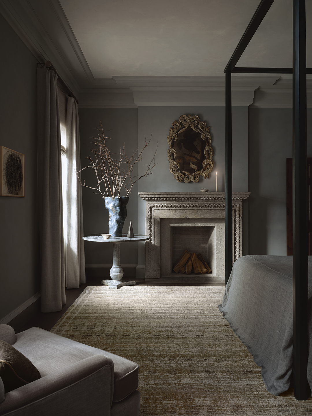While the Perry rugs are only available to the trade (they’re made with a special soumak weave construction that creates beautiful details and a sturdy, thick weave) they’ve got us pining for all things striped. So for everyone else out there, we suggest pivoting to the sage/granite colorway in the Bleeker rug, and for an extra dose of the pattern, top your sofa or bed with the Sullivan pillows. “From far away, this pillow reads as a solid but up close, the muted stripes and subtle flange add the perfect pop of color and pattern to any space,” says Brent. Now we just need a storied New York City townhouse to complete the picture.