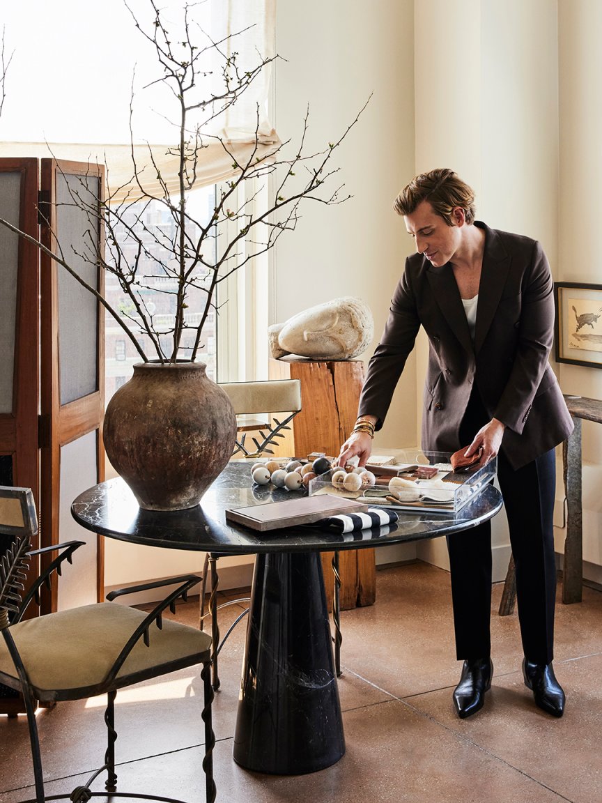 Jeremiah Brent fashions himself a tactile person, a characteristic you can see so clearly in the offices he designs, including his own. Materiality and texture are paramount, like in his leather-swathed desk or the mix of organically-shaped furnishings and marble; even his moodboards have a three-dimensional quality to them. The same can be said for his latest collection with Paper Source, a tight 18-product line that includes items like soft leather corner bookmarks and picture frames, a marble paperweight, and a suede, gridded journal. “This collection is a tribute to the raw beauty of nature’s elements—metals, glass, stone, wood, and leather,” Brent shares. It pairs really well with the designer’s handsome custom stationery, too.