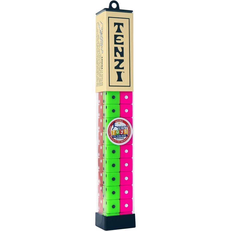A game that’s fun for kids and adults is Tenzi. Each player gets 10 dice, and you keep rolling yours until all the dice have the same number facing up. It’s weirdly electrifying!