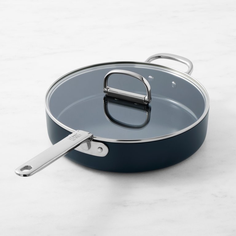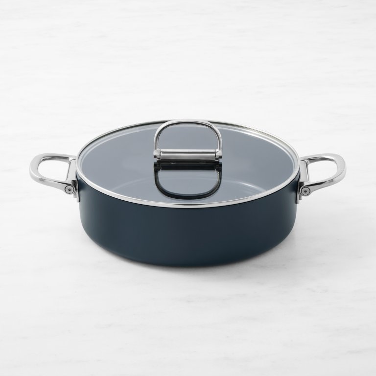 I opted to try the 8-inch frying pan and the 3.5-quart sauté pan that I thought would be great for one-pot meals like shakshuka or stew, and they stack into each other perfectly. I suspect it won’t be long until I get the entire 10-piece collection plus the wok and stockpot. The set even offers a lid holder and pot protectors—the company really thought of everything.