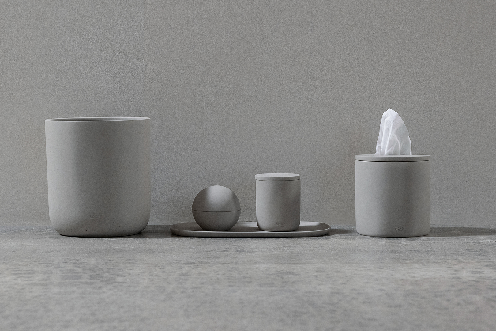 Patios, countertops, and Brutalist sinks—we already know that concrete is a handy renovation material, but Kim Kardashian is reimagining the gray composite in her new Skkn by Kim housewares line, which features five hand-poured countertop bathroom accessories made from, you guessed it, concrete.