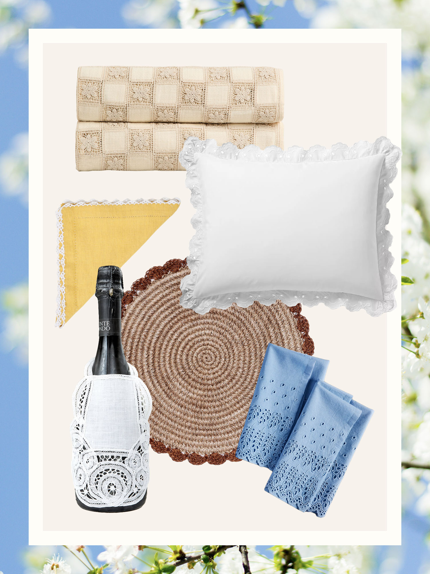 And while we love a vintage-inspired look hanging in our closet, we love it even more in the home decor space. Sweet textured detailing on napkins, pillowcases, and throw blankets evokes a warm and fuzzy, nostalgic feel—like you’re hanging out at your effortlessly chic nonna’s house. Get the look with some of our favorites, below.
