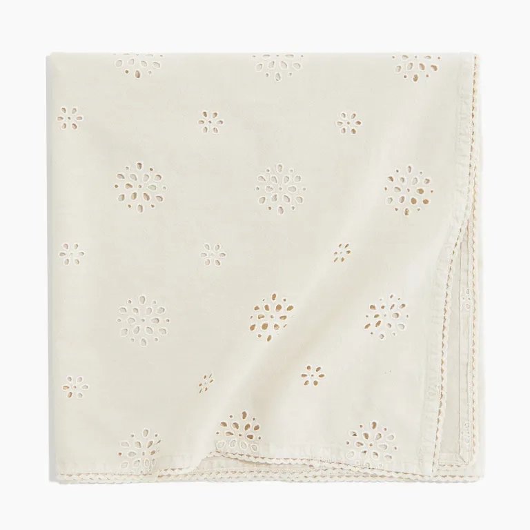 Simple eyelet cutouts make me want to retire my plain white tablecloths once and for all.