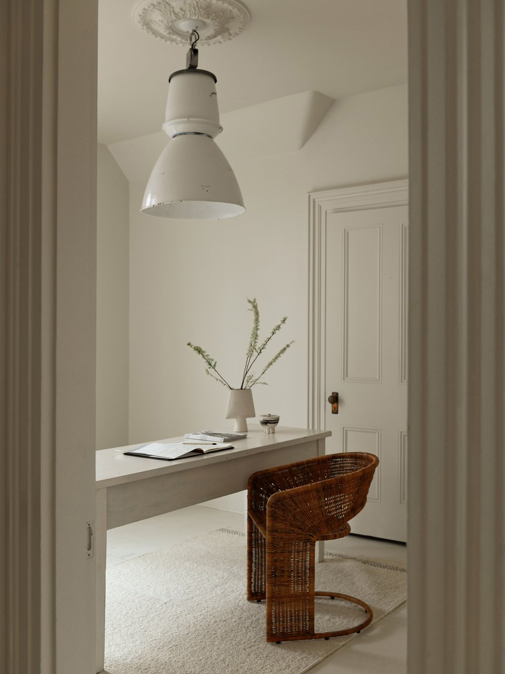 We’re pretty sure that Ford filled the home office with vintage finds, like this woven chair, but we were able to scope out a new version that looks alarmingly like the original.