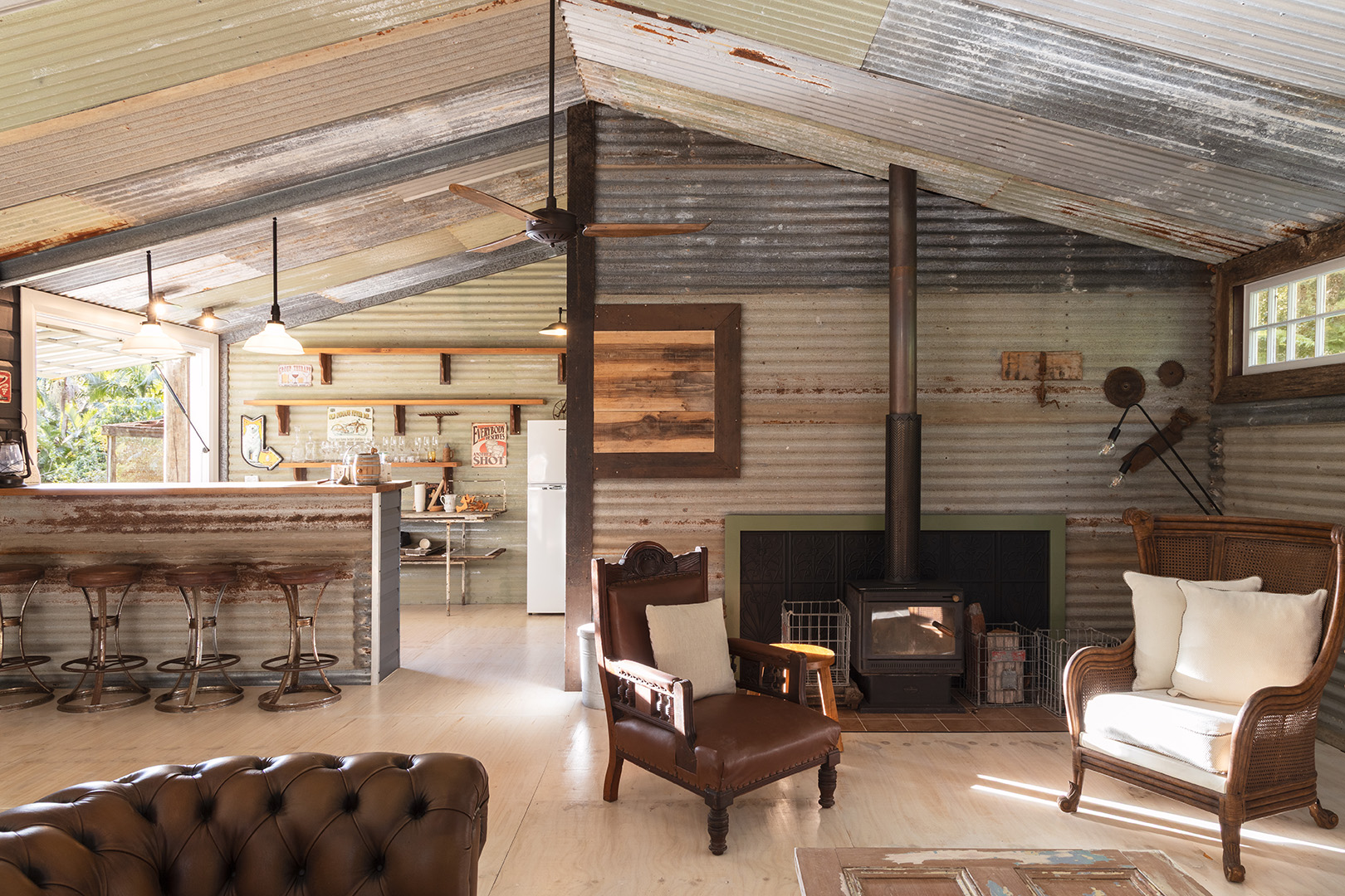 Across 7.4 acres, there’s a private creek, a veggie garden, and more than 30 fruit and nut trees. (Yes, there’s a pumpkin patch. No, you’re not hallucinating.) Another standout moment: A guest shed that’s been upgraded from glorified storage to full-on rustic retreat. Think a bar with a serving window, a wood-burning heater, and an open-air bath setup that feels one eucalyptus branch away from a wellness retreat.