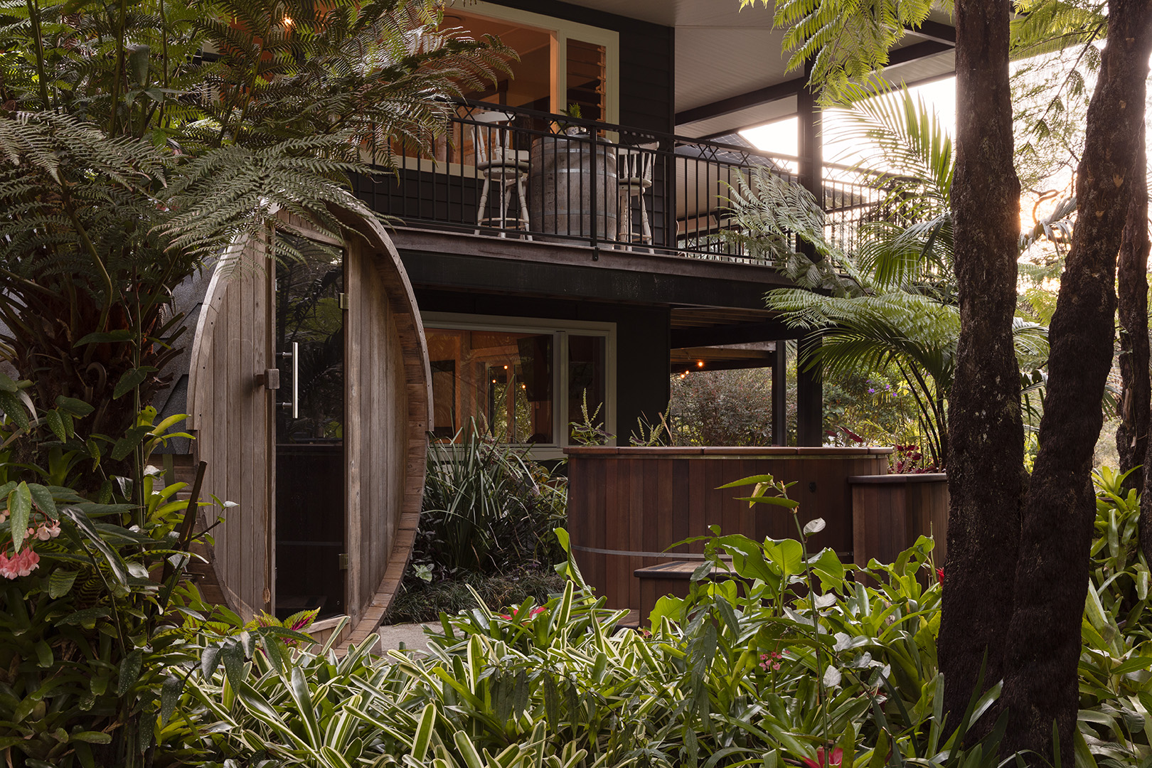 The spa energy doesn’t stop there. There’s also a cedar hot tub, an infrared barrel sauna, and an outdoor shower, all strategically placed to soak up the lush National Parklands surroundings. A powered yoga hut offers a quiet place to stretch (or just hide from your family), while a freshwater pool and sun deck check the resort box.
