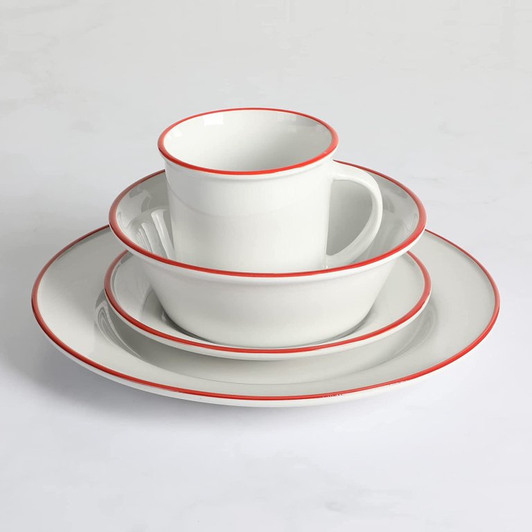 Other favorites from the collection include a ruffle-trimmed milk-glass cake stand, a Le Creuset–esque cast-iron enameled Dutch oven, and the sweetest striped napkin set. And don’t snooze on the 16-piece red-rimmed porcelain dinnerware set, which is only $50 and gives off major French bistro vibes.