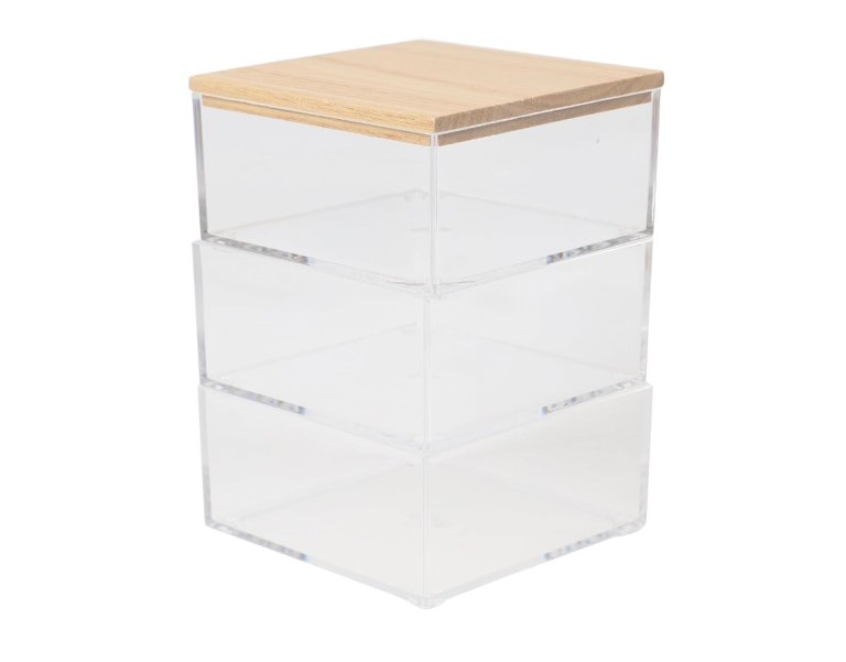 These stackable containers have a stylish finish (peep the natural paulownia wood lids) and are ideal for keeping things tidy on your desk. Psst: They can work just as hard corralling beauty serums in your bathroom, too.
