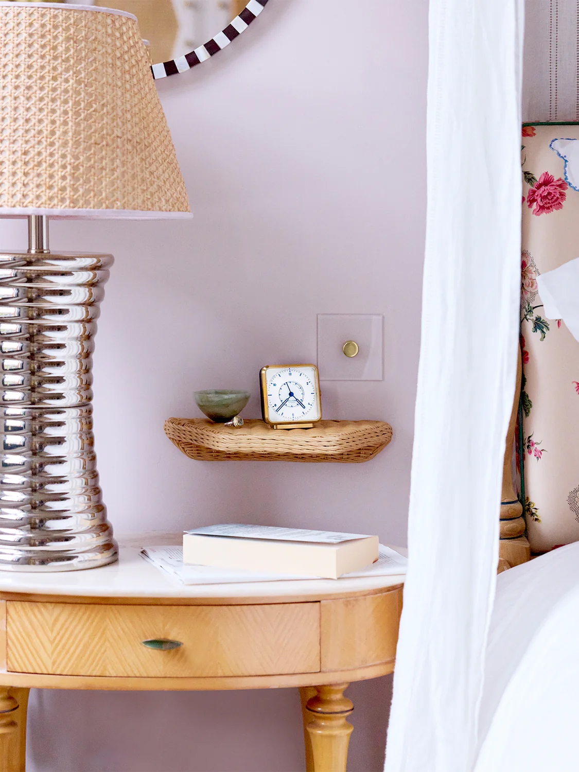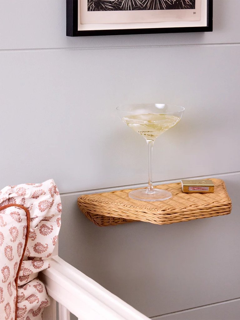 When Matilda Goad makes moves, we pay attention. Just when we thought it wasn’t possible to be any more into the British designer’s homeware line MG&Co., its latest launch, a mini rattan wall shelf, dropped. Aside from stoking our delight at all things tiny—seriously, it’s only about 11” x 5”—we immediately saw how it could be the perfect answer to an all too common storage woe: the cluttered nightstand.