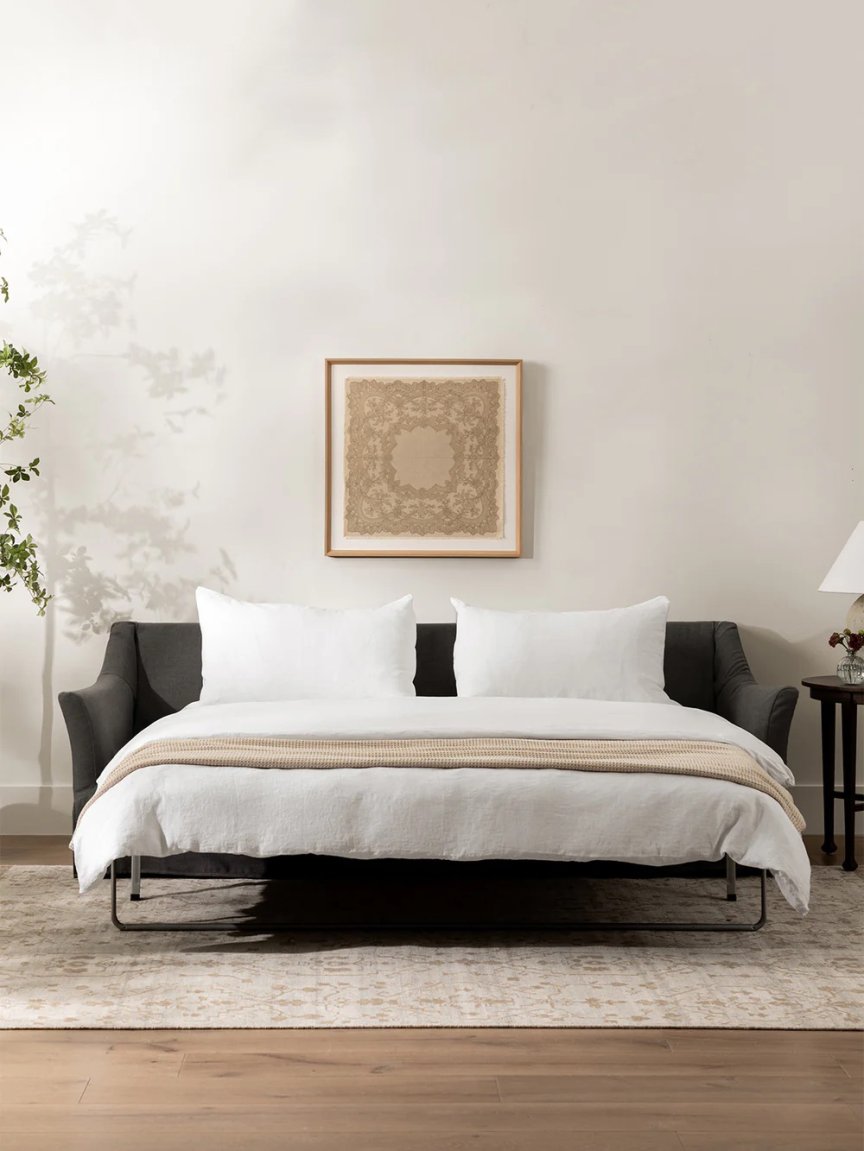 A good sleeper sofa design can be hard to come by—after all, it’s tough to conceal an entire bed within a couch. But McGee & Co. took a stab in its fall collection, and the result is an absolute dream for those torn between minimalist and traditional seating styles.