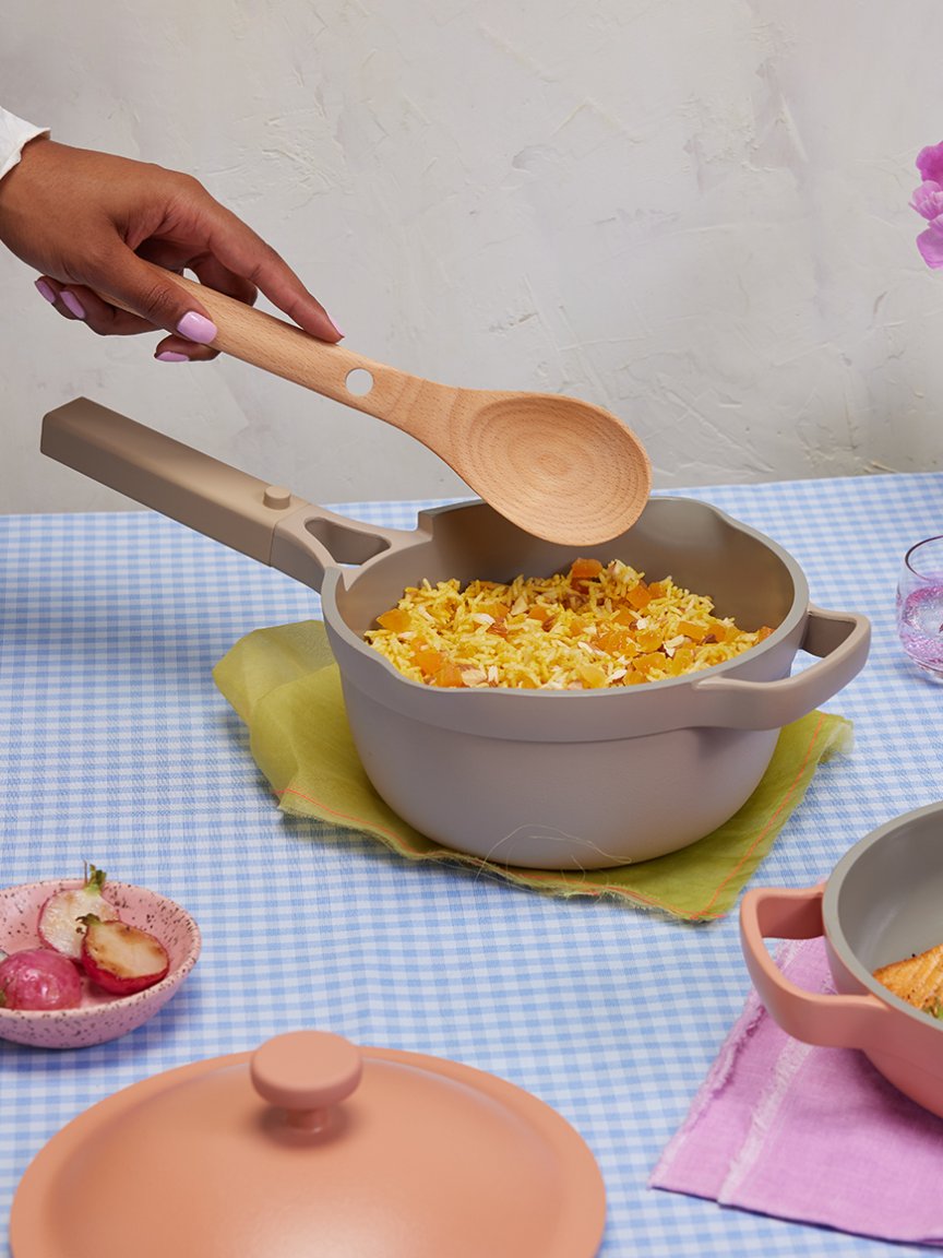 When you’re a small-space dweller, finding storage for that extensive wooden spoon collection or your rotund Dutch oven comes with its own special set of challenges. Whether that’s utensils jockeying for room in narrow drawers or using the oven as a makeshift cabinet, you can end up in a game of Tetris. If you’re looking to downsize items in a bursting-at-the-seams kitchen or just want a few options that will travel well, say hello to Our Place’s newest family members: the Mini Perfect Pot and Mini Always Pan, out today.
