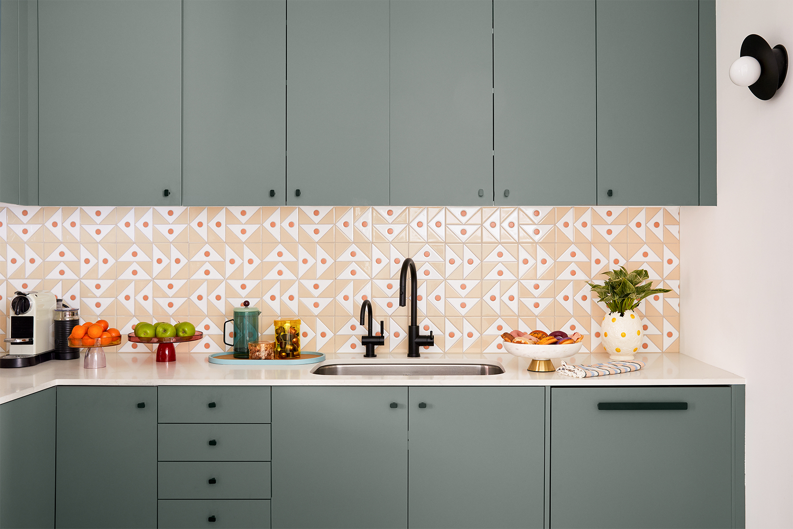 What’s on the walls: I’m beyond thrilled to be able to showcase some rad art by a few of my dear friends. For my office, Sally King Benedict painted me a custom piece (I sent her renderings of my scallop-trimmed desk and credenza, plus a swatch of Benjamin Moore’s Bunny Nose Pink, and away she went). Mark Leary was a dream to work with on the upstairs workroom’s custom mobile, which helps provide movement and break up the sea of white walls. Plus the colors tie in perfectly with the large-scale David Matthew King piece and the checkered Moroccan rug downstairs. I’ve also got some special prints from my girl Nicki Sebastion and her Prints for a Cause series. And all of the tile in the bathroom and kitchen are by Fireclay. I am particularly obsessed with the kitchen backsplash that features its collab with my all-time-fave friends–slash–L.A. doyennes–slash–sisters extraordinaire, Block Shop.