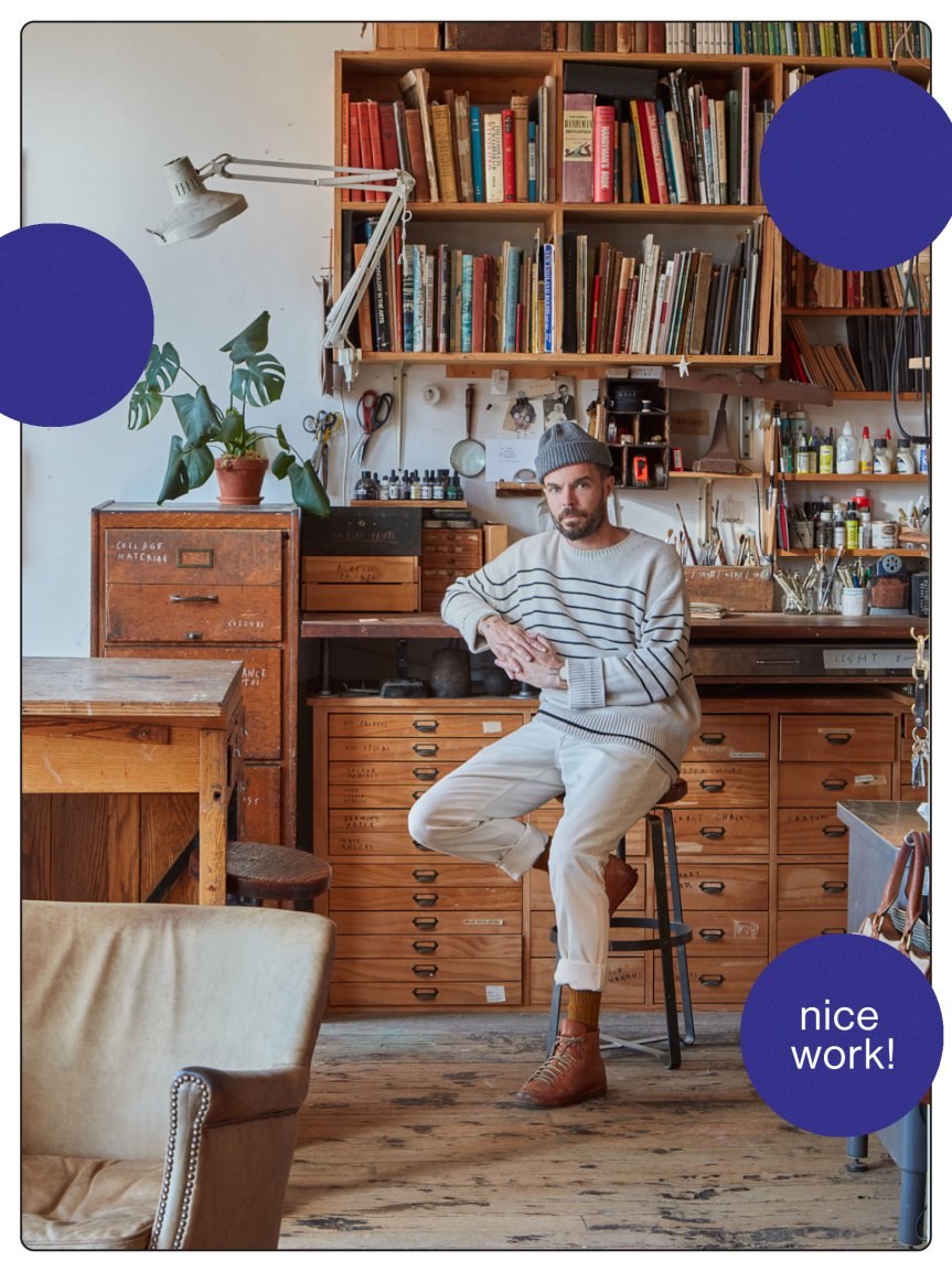 Visiting a person’s workspace is like taking a peek inside their brain. Whether it’s at home or in an art studio, Nice Work explores where creative people do all of their, well, creating, so that you can steal their on-the-clock style.