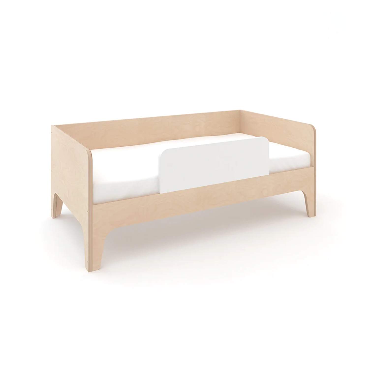 The Perch Nest’s convertible frame means it can stick around from the toddler to tween years. Right-side-up, it functions as a lofted bed for the 6-and-older crowd. At just over 4 feet tall, this style can dual as a bunk with a matching trundle or free up space for toys. (Plus “it’s really nice to be able to kiss your kid on the forehead without a ladder,” Demenge points out.) Flipped over, it can be used as a low-profile canopy that’s also compatible with the Perch pull-out trundle; you can find the custom-made mattress here. (While the Perch Nest accommodates any twin mattress with an 8-inch depth or less, the trundle is a trickier fit). “Every configuration allows for sleepovers,” Demenge explains of the Perch Nest.