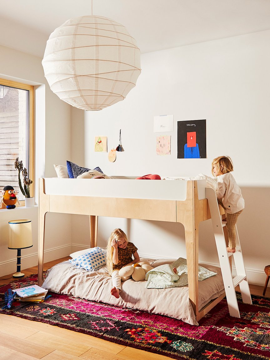 Like all of Oeuf’s furniture, the Perch Nest is crafted by artisans in Latvia with FSC-certified, responsibly harvested wood and Greenguard Gold–certified materials. Demenge and Ryan also plan to introduce customizable linen curtains that attach to the built-in cable on the frame later this summer. Until then, Demenge notes that blankets, sheets, and pillowcases do the trick for a cozy-cabin feel or fort. When asked for more styling advice, she mentions that the bed should be viewed instead as a blank canvas. “The beauty with kids is that the sky’s the limit,” she counters. “Give them the space and kind of tiptoe out of the room. Let them do their magic.”
