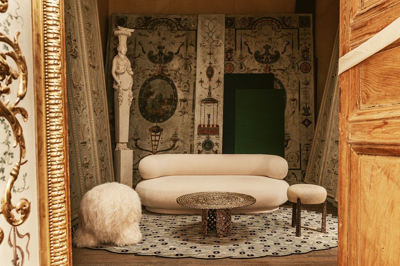 The Invisible Collection, a cutting-edge furniture gallery with a presence in New York, London, and Paris, popped up at Féau Boiseries with its Mobilier National collaboration. In the grand spaces flanked by antique panels, rounded-edge pieces like the Hug sofa by Fleur Delesalle and Umbo sofa by Hamrei caught my attention with their elegant organic forms. I will always remember the latter for its luxurious tufting, not with buttons but with pearls.