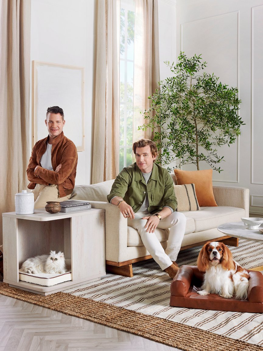 It wasn’t long after interior designers Jeremiah Brent and Nate Berkus debuted their hamster-size vegan leather sofa for PetSmart that customers started asking: Can you make that for dogs? And so, one year after the launch of their small-pet collaboration, they re-created the Domino Good Design Award winner on a much larger scale. “I’ve been joking that I’d like to see it in human size now,” says Brent with a laugh.