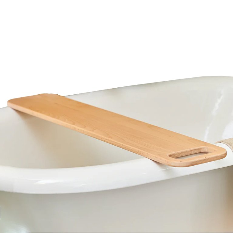Just enough room for a candle, a book, your phone, a little snack, and a hand towel (we love the built-in hanging slot on the end).