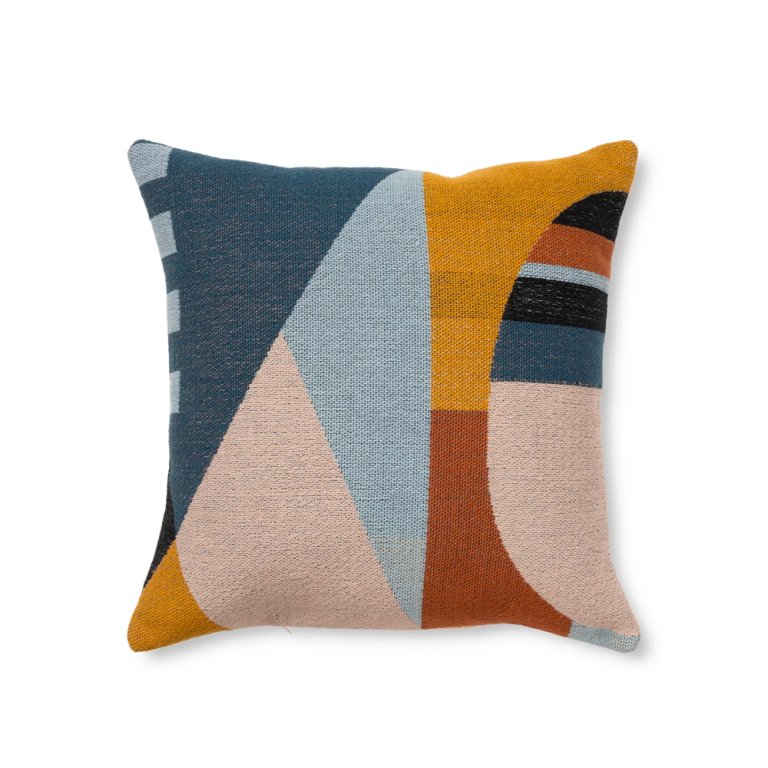 If you’re not quite ready for a full ’70s treatment, a throw pillow is an easy place to start. This geometric pattern is applied to a fine knit fabric for a little funk and a lot of cozy.