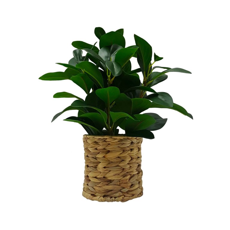 Greenery is just as popular now as it was then, but perhaps you want something a little easier to take care of. A faux leafy peperomia is all the better when it’s set in a wicker basket to nod to your pendant lamp.