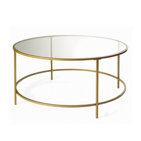 Shiny metallic details nod to the festive, freewheeling spirit of the time. This coffee table straddles the line between lingering mid-century modern lines and more experimental glass and brass finishes.