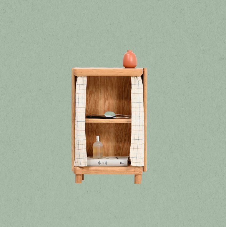 Riffmade’s four main offerings—the island in two sizes, plus a side table and a desk—all highlight the clutter-busting powers of a humble swath of fabric. “Curtains bring warmth to your space, are lightweight for use and shipping, and open up a new canvas for textile expression,” they say. “Where a door swings open, a curtain has a more fluid transition—a tactile way to shift states.” Plus, a specially-designed track system allows you to swap out the fabric—there are currently 10 options—when you’re in the mood for a change.