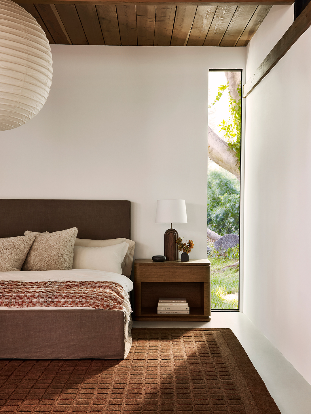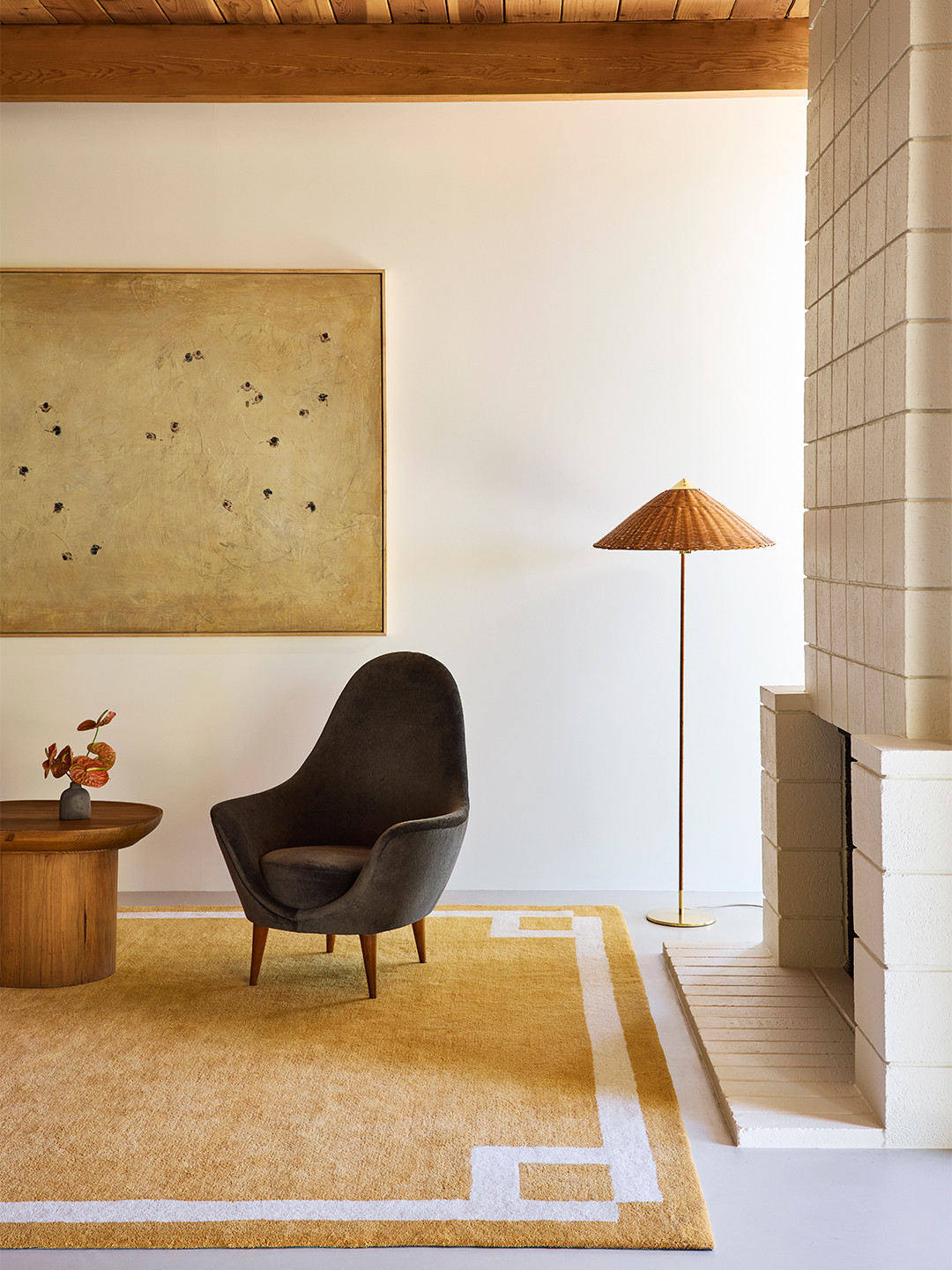 Solid rugs alleviate decision fatigue, and a high pile always turns up the cozy factor. Olano’s take on shag is available in a range of cool tones, like dark grey and sand.