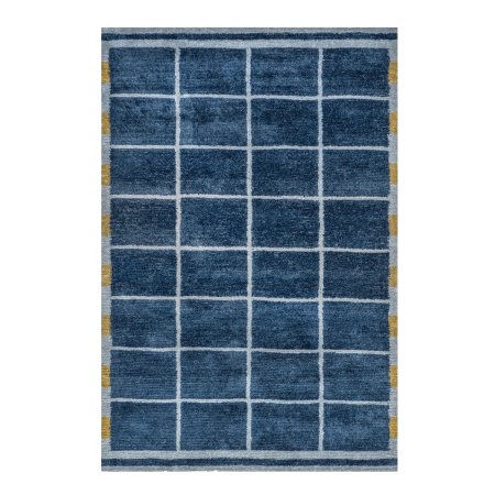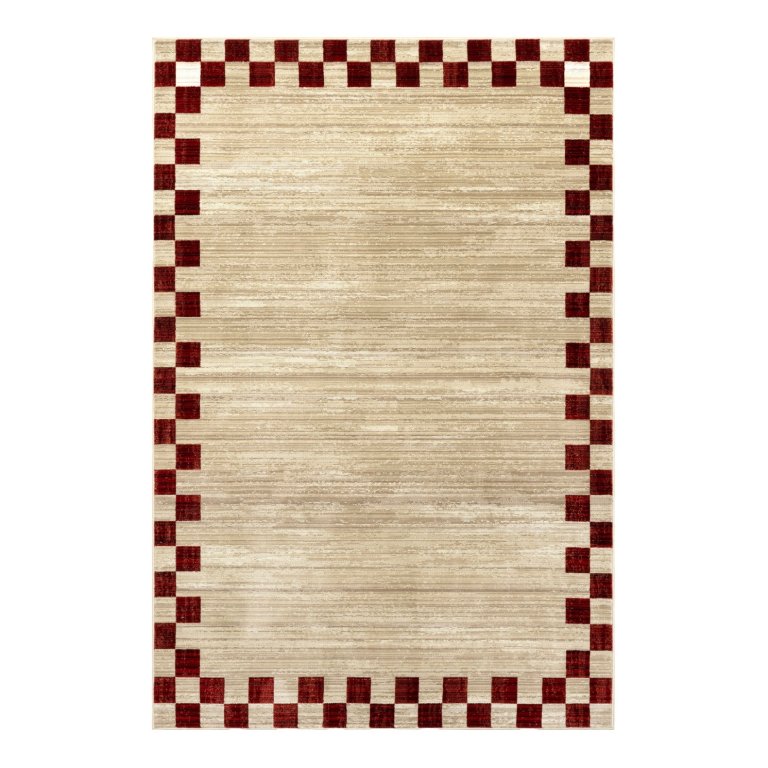 The classic checkerboard pattern is limited to this area rug’s border, which is a fresh take on the popular pattern.