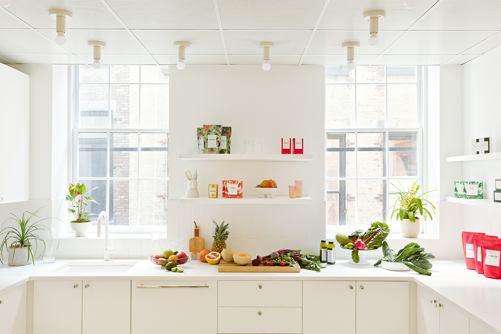 After spending the prior year working remotely, we wanted to create an inspiring space for our team to have more room to gather with clients, host events, and bring nutritional ideas to life, while also staying true to our brand roots of health and vitality. We even named our meeting rooms to mirror our company values: The Transformation Room, Science + Spirit Room, Service Room, S-Factor Room, and Joy Room. Our boardroom is called the Vision Room.