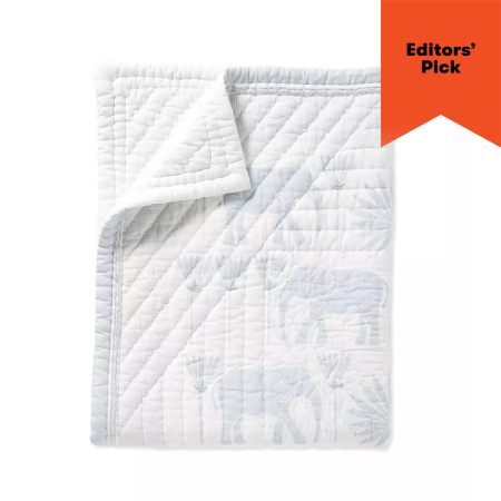 We’ve been waiting for what feels like forever for Serena & Lily’s new nursery bedding to drop. This month we finally received word that the mini quilts were officially added to the site. Hand-embroidered in cotton voile, there’s a whole range of subtle yet cheery patterns to choose from, including jungle-inspired scenes of tiger cubs among palm fronds in a soft yellow and a herd of elephants in a goes-with-anything sandy gray or sky blue. Each features a pillowy ticking stripe border for a tailored touch. Both are also reversible (the other side is a mini geometric print). While these two are our favorites, there’s also a simple scalloped edge and starfish-adorned option in a French blue to pick from.