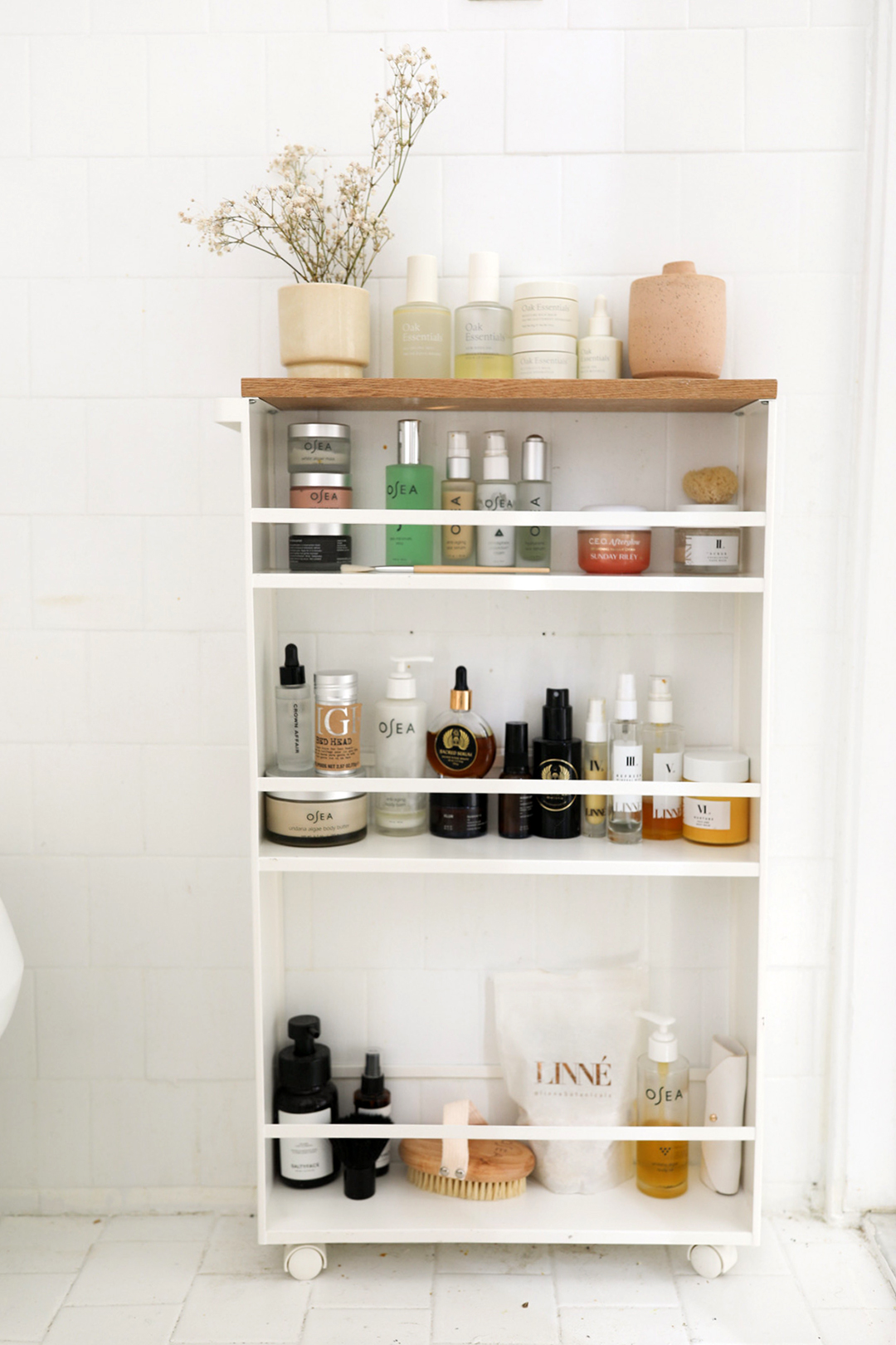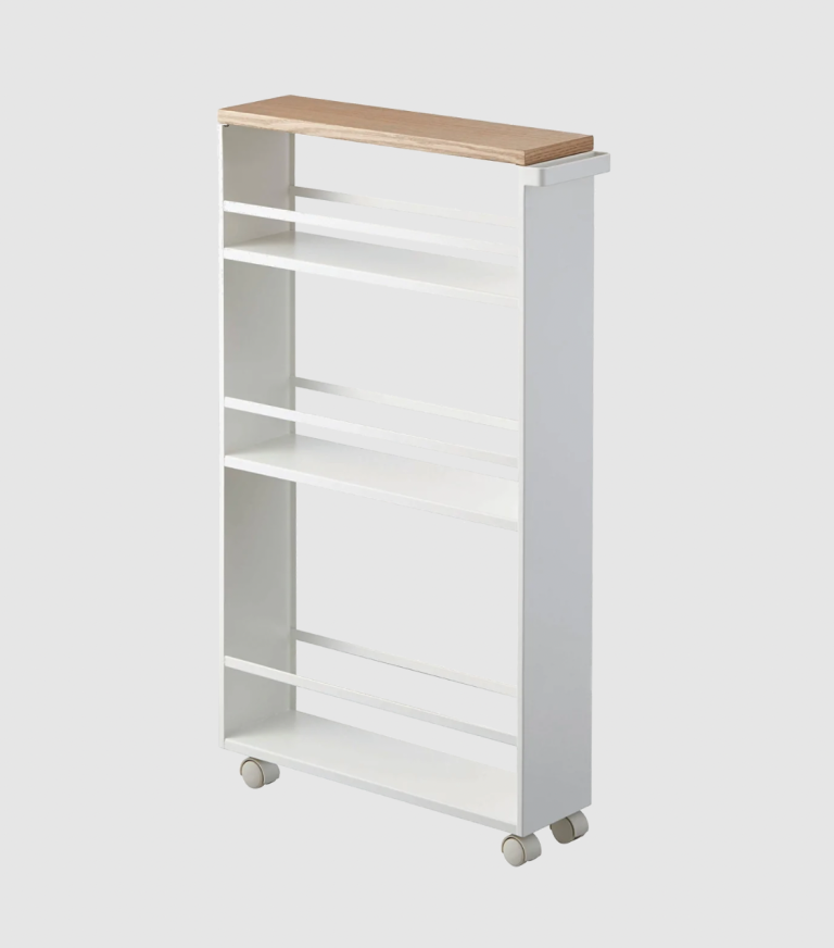 One of these rolling carts sits next to our stove, giving us around 6 extra inches of countertop space (it’s a good spot for a spoon rest, olive oil, or cookbook). We have another in the bathroom, where we store lotion, skin-care products, and spare toilet paper. When you want something, you can just scoot it out when you need it and then push it back into its corner.