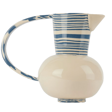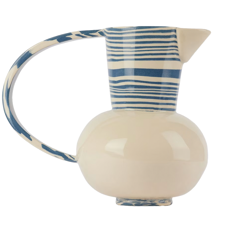 Henry Holland Studio makes exquisite ceramic pieces—striped pasta bowls, creamers with zany handles, and this Ssense exclusive water jug. Its kooky proportions will make it a conversation piece on your table.