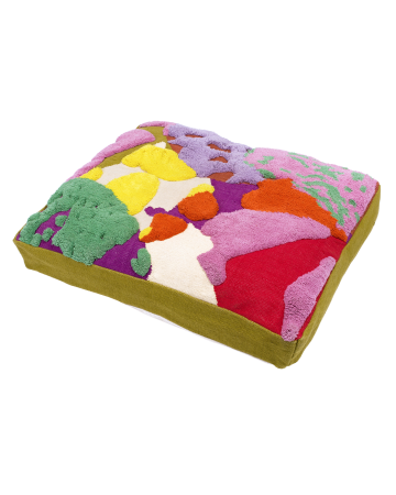 Before Alex Proba could launch her latest collection of home goods, she had to have it tested and approved by her best friend: her dog, Sam. “He deserves the world, and so do all other furry friends, which inspired me to create ProbaPaws,” shares the multidisciplinary designer and artist, who is probably best known for her vibrant murals and textiles (Proba’s work has spanned painting the bottom of a swimming pool to turning kids’ drawings into rugs). The new line encompasses stylish bandanas with her signature abstract shapes, chew toys that look like flowers out of a Dr. Seuss book, and more that’ll make you feel good about pampering your pet. Naturally, her pup’s favorite pick of the bunch is the superplush cushion dubbed Sam’s Bed.