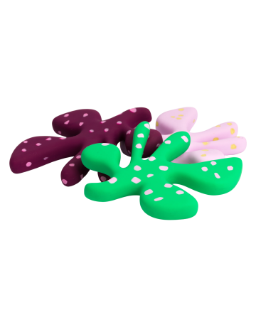 Part of the reason the assortment took a year and a half to finish is because Proba focused on safety. “Since having Sam, trying to buy well-made accessories was very hard, especially ones that were made out of good materials, too,” says Proba. “It’s crazy that there are no restrictions on the dog toy industry.” The Petal toys, available in three colors, are crafted out of natural food-grade silicone (they’re BPA- and phthalate-free), which is ideal for dogs like Sam who are big on playing fetch. Another thing to feel good about: A portion of the proceeds will go toward Three Little Pitties Rescue, the organization that brought Proba and Sam together three years ago.