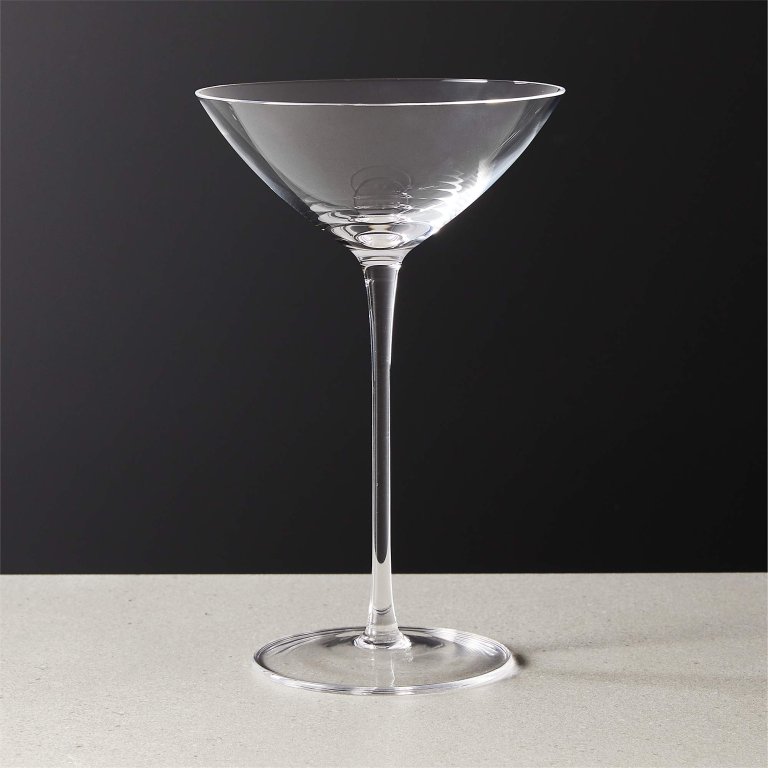 How tall is extra-tall? A classic martini stem typically measures around 7 inches in height and can hold up to 8 ounces of spirits; The White Lotus martini glass measures around 11 inches in height and can hold up to 7 ounces of spirits. So shrink the drink’s capacity by one ounce, give it a four-inch growth spurt, and ecco qua: drama, shaken not stirred.
