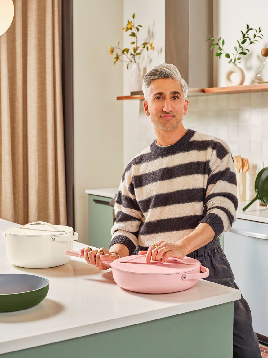 We know what it looks like when Tan France, one of the stars of Queer Eye, transforms the inside of someone’s closet. Now we’re getting a taste of how he’d dress up the inside of kitchen cabinets with his new collection of cookware for Caraway. The Tan France x Caraway Home Monochrome collection just launched with three limited-edition sets in moss, a deep shade of green that France says was influenced by the way he uses this “neutral” in his wardrobe; blush, a soft “of the moment” pink; and créme, for those who prefer more of a classic option. Each piece comes in a striking single shade with hardware to match, but the general makeup of the pots and pans is the same: You can still count on the nonstick, nontoxic ceramic coatings and magnetic lid organizers that make them one of our go-to brands.