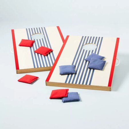 Don’t let the Americana theme limit the use of this cornhole set to your July Fourth celebration. The boards attach to each other with rope handles, which will make it easy to transport the party to tailgates come football season. Let the games begin.