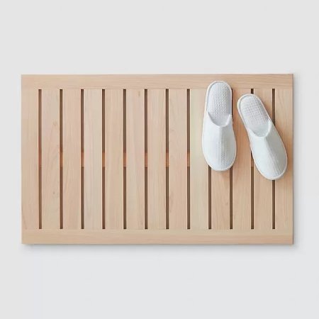 Say goodbye to soggy bath rugs and indulge in a spalike escape every time you step out of the shower onto this handcrafted hinoki cypress mat. Its aromatic wood grows even more soothing when wet, and its smooth, knot-free texture is a daily treat for your feet.