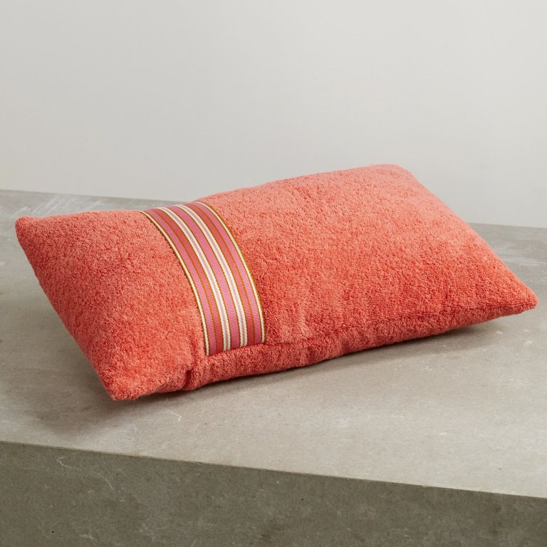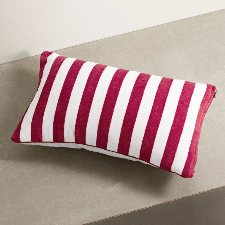 An Italian fashion house founded in 1924, Loro Piana is known and beloved for its luxury cashmere, vicuña, and extra-fine wool staples—think: sumptuous knitwear with timeless silhouettes. The brand’s select offering of cotton-terry-crafted “beach pillows” unsurprisingly features an aesthetic that satisfyingly radiates the same classic elegance of its wearable styles. It’s the ideal investment for those who’d like to inject their outdoor sofas with some Italian beachside energy.