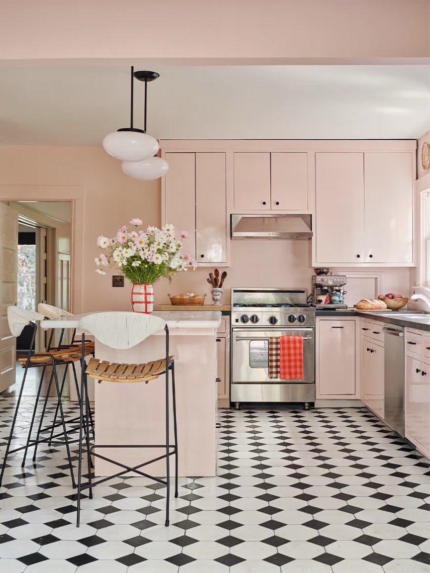 You’d be hard pressed to find a space where this sleek Schoolhouse pendant and its subtle romantic scalloped details don’t fit right in, but they’re perfectly at home in the pretty pink kitchen of Claire Vivier.