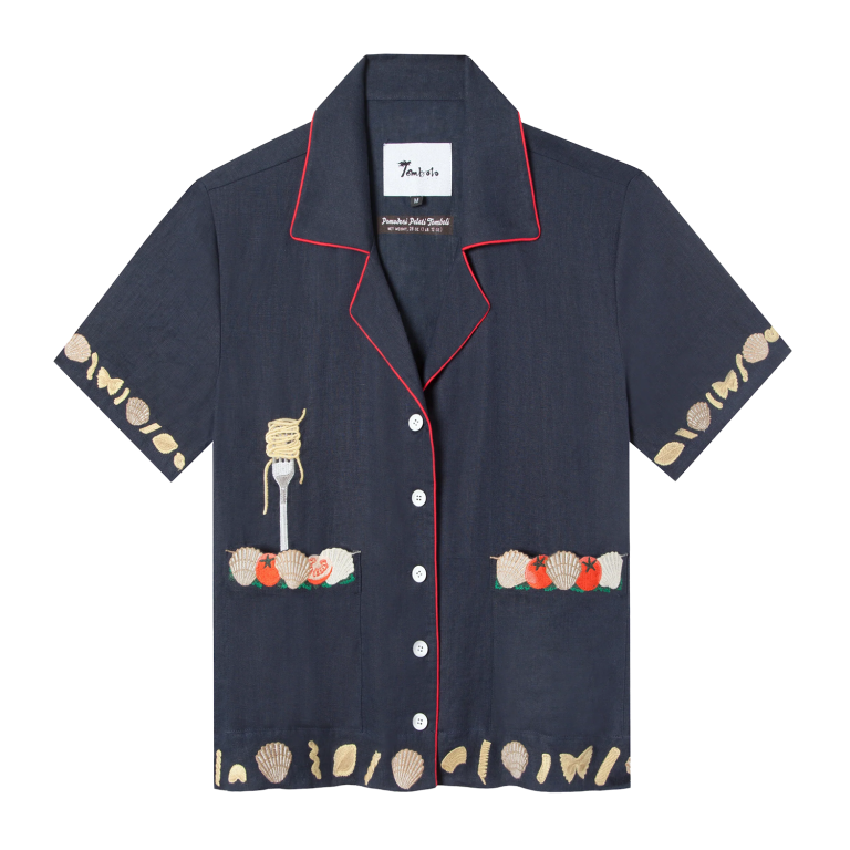Owning this style at home is one thing, but bringing it out into the world involves some wardrobe juggling. Anything with an antipasto motif is a no-brainer; just be sure to top things off with a silk citrus-clad bandana in your hair, a fishnet-esque bag, or a touch of rosy highlighter and a spritz of vacation-scented perfume. Make it look like you spent the day under the sun even if you just sat at your desk.