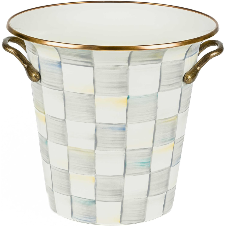 What this ice bucket lacks in reviews it more than makes up for in elegance. The stainless steel silhouette is uniquely shaped with delicate scalloped details and accented with a pair of ring handles.