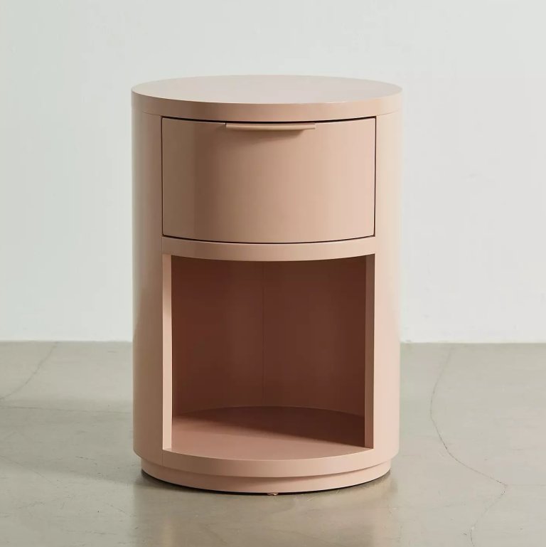 This cylindrical nightstand will sweeten your wind-down routine with its rose-colored hue. Meanwhile the metal glide drawer keeps the surface clutter-free, and you can subtly display your bedtime reads in the cubby below.