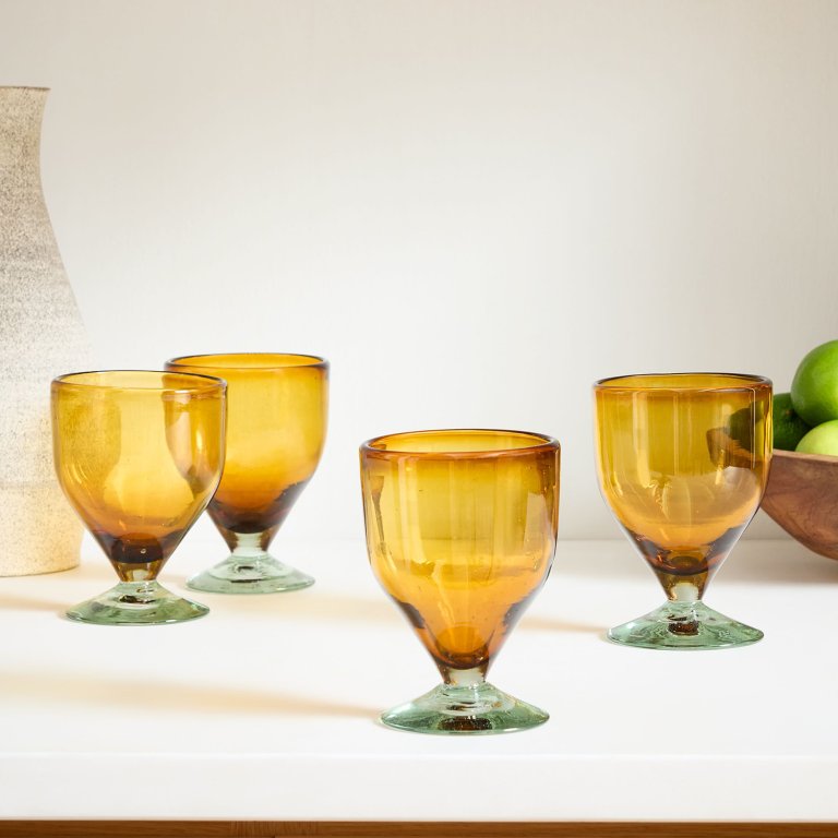 Created in collaboration with Mexican designer Diego Olivero, this stemware set features four artisan-designed wine goblets handcrafted using recycled glass.