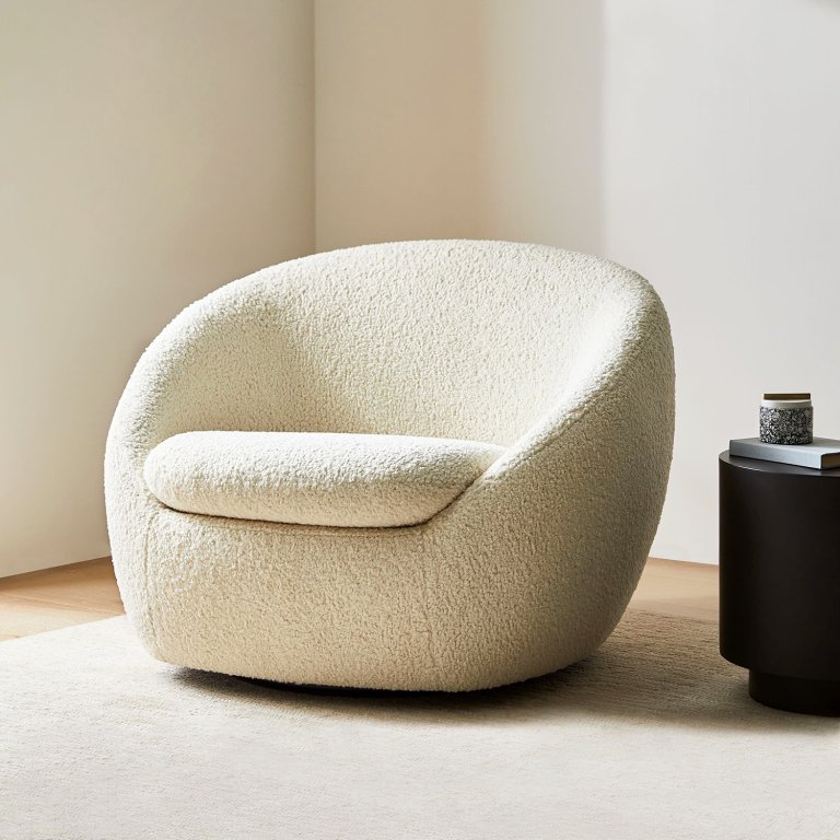 Domino readers and editors can’t get enough of fuzzy swivel chairs, whether they be of the true bouclé or sherpa variety. This cozy West Elm version of the popular furniture piece boasts a wide, low-slung seat that’s ideal for lounging and comes covered in your choice of countless fabrics (with sliding sales attached). Our top pick is—shocker—the ivory shearling.